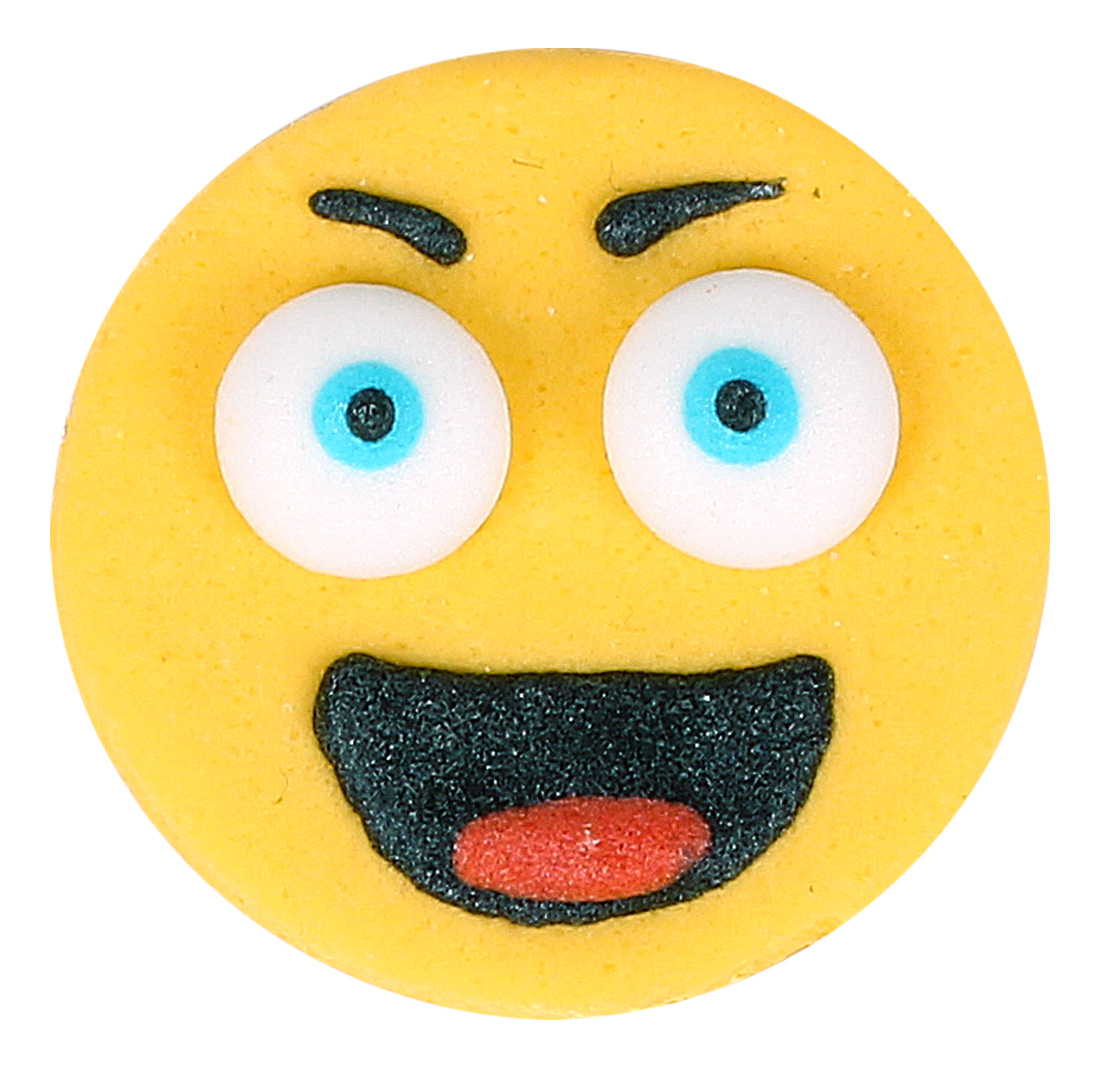 Handgefertigte, gelbe Zucker-Emojis mit Nikolausmütze und unterschiedlichen Gesichtern