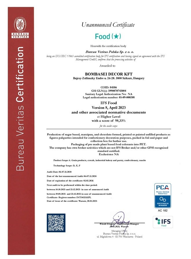Unser Betrieb ist seit 2013 IFS Food “higher level” zertifiziert.