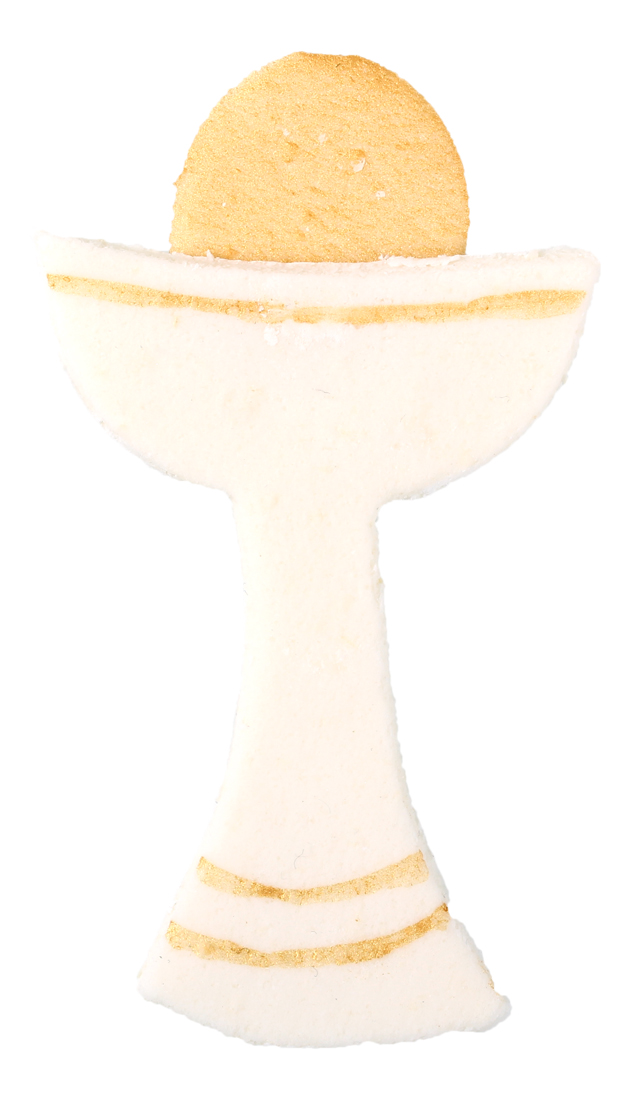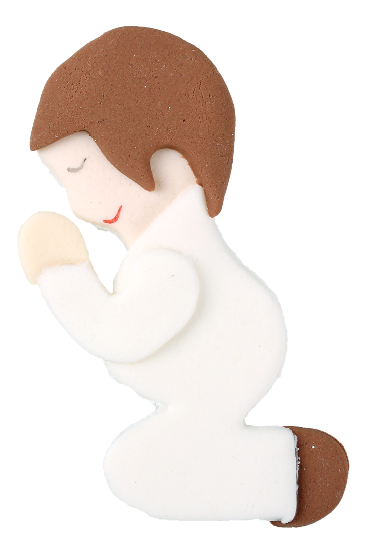 Handgefertigter, Dekoraufleger Kommunion Junge kniend mit christlichen Symbolen