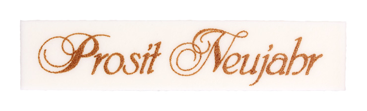 Handgefertigte rechteckige Schriftstreifen aus Dekormasse mit dem Schriftzug "Prosit Neujahr" & "Glückliches Neujahr"