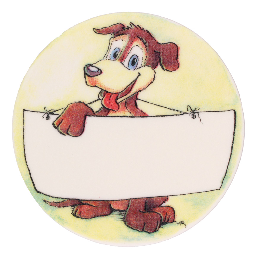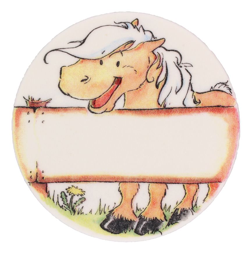 Handgefertigte, runde Aufleger aus Dekormasse mit verschiedenen Tier-Motiven und einem freien Feld.